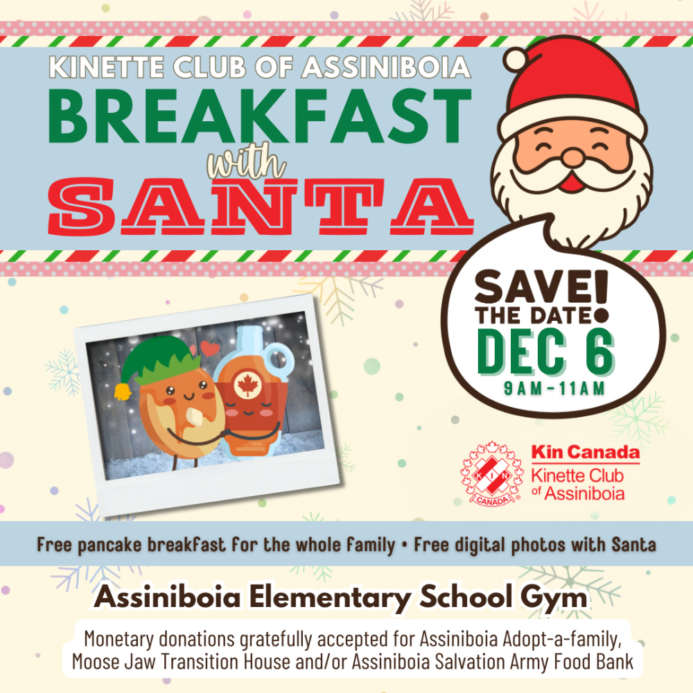 The Assiniboia Kinettes Club is thrilled to host Breakfast with Santa once again this holiday season! Join us for a magical morning filled with food, fun, and festive cheer.