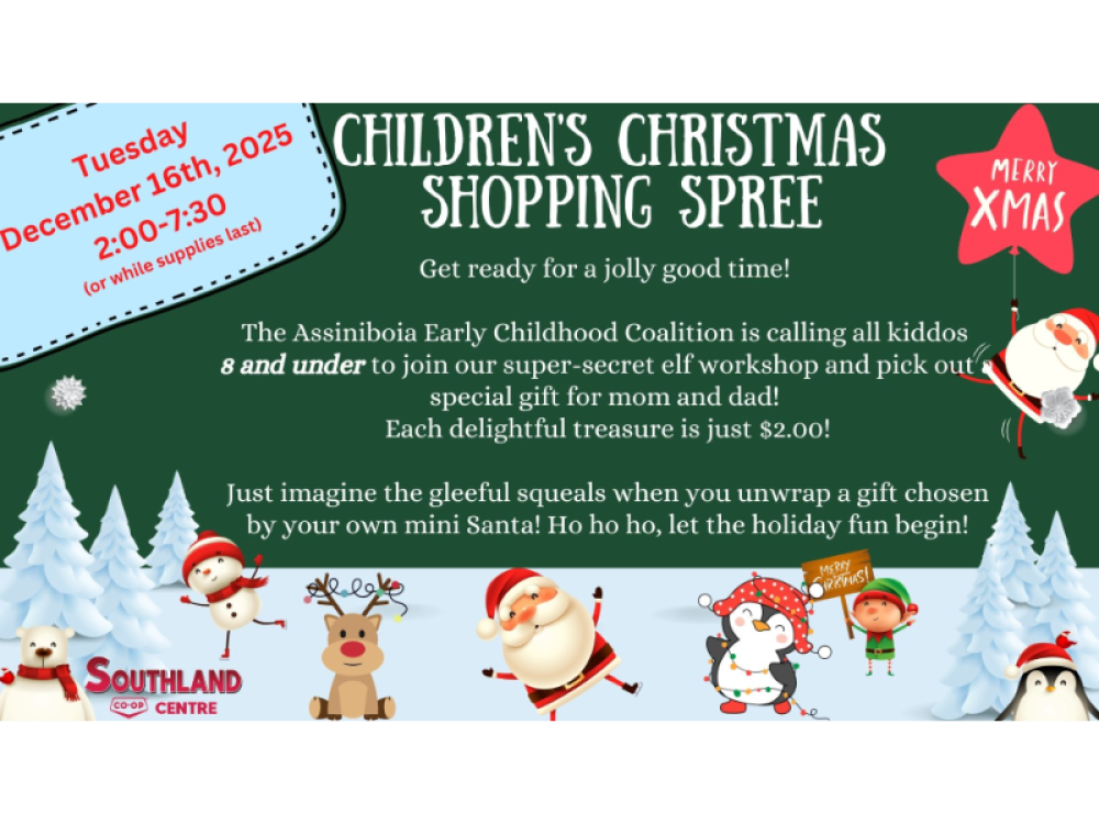The Assiniboia Early Childhood Coalition is calling all kiddos 8 and under to join our super secret elf workshop and pick out special gift for mom and dad! Each delightful treasure is just $2!