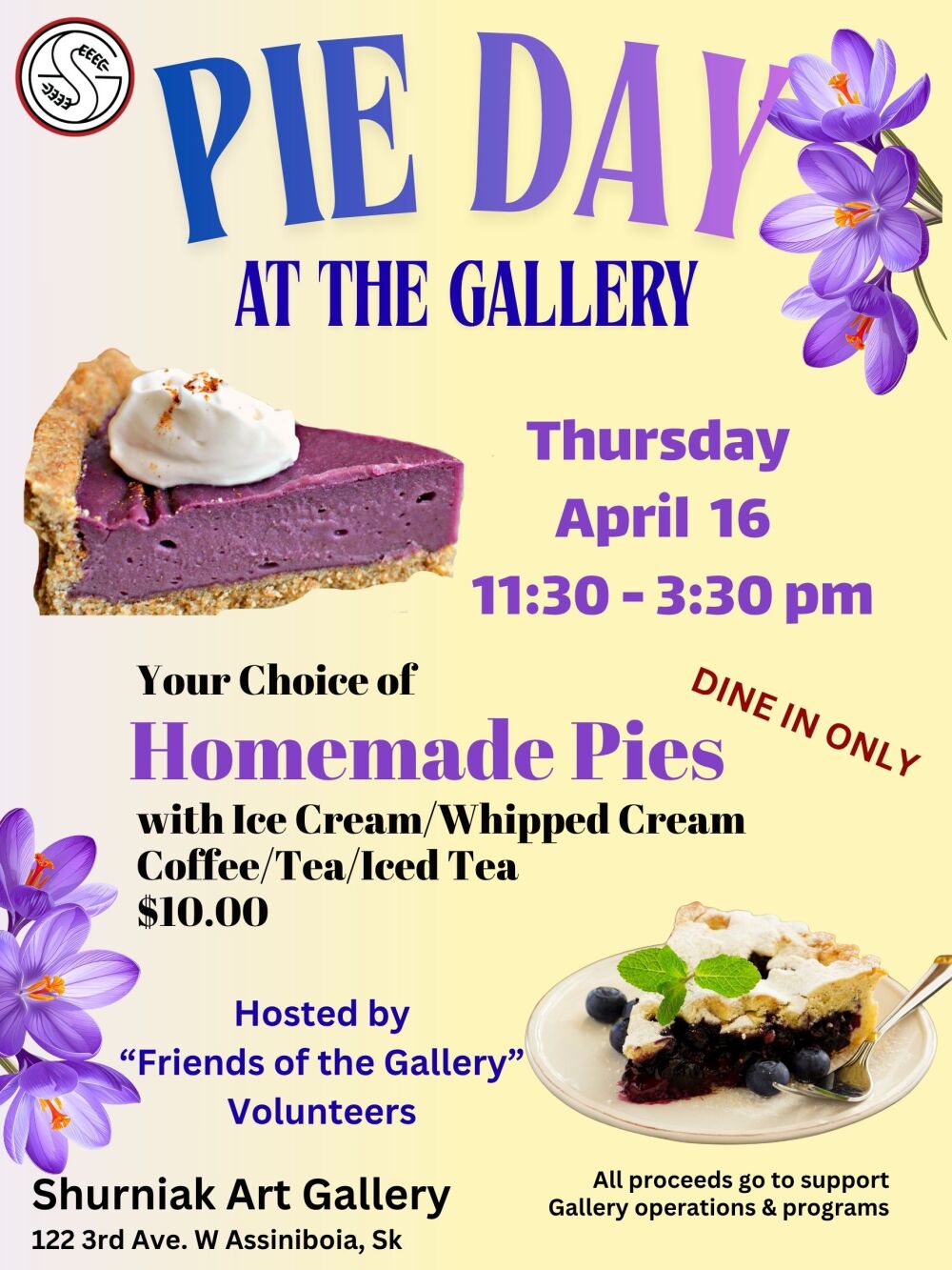 Join us at the Gallery for our homemade Pie, Ice cream and beverage, all for just $10.00!